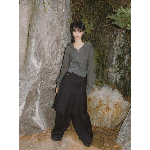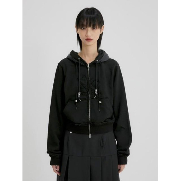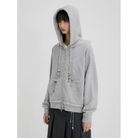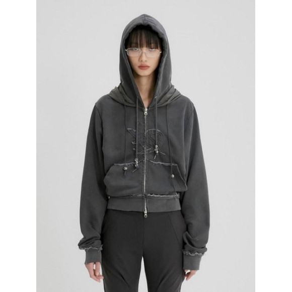 [ FLAREUP ] Layered Zip Hoodie / [การขึ้นไประเบิด] เสื้อคลุมที่มีหมวกคลุมศีรษะไว้กันลมและหิมะพวงมาลัยหลาซิป